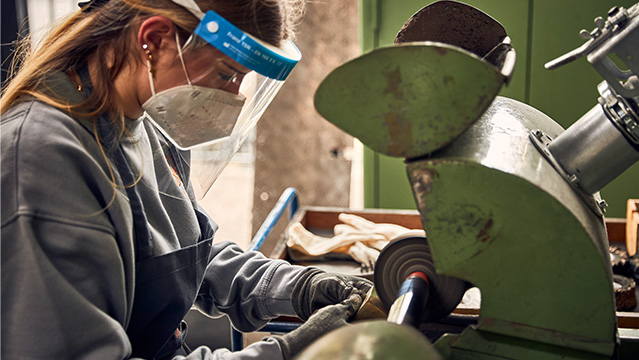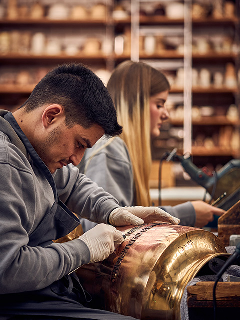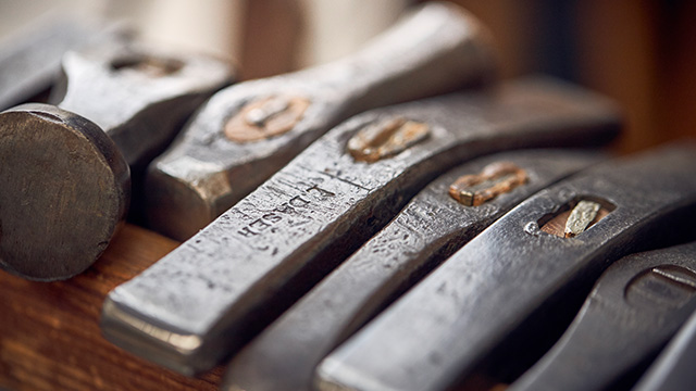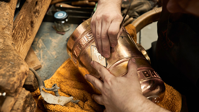 Zum Schluss kommt alles zusammen: Bei der Endmontage werden Details wie Holzgriffe vernietet oder Pokalelemente fest verschraubt.